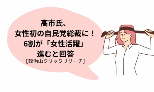 高市氏が女性として初めて自民党総裁に!6割が「女性活躍」進むと回答【政治山クリックリサーチ】 (2025/10/23 政治山)